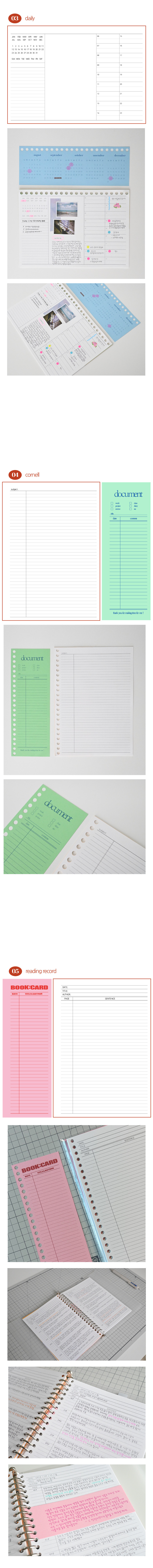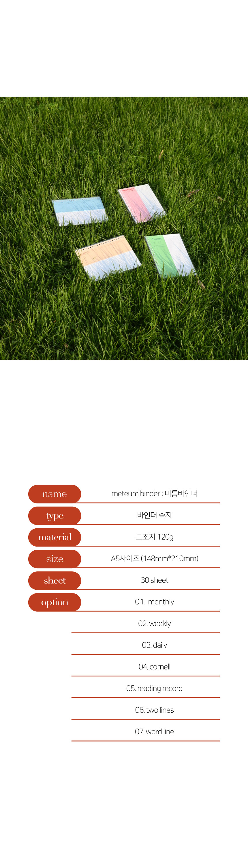 [미틈] 바인더 속지 7종 (20공, 먼슬리/위클리/데일리/코넬/독서기록/라인/단어장)