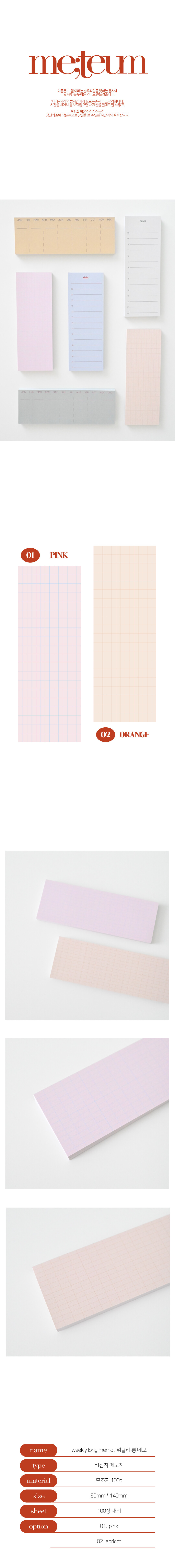 [미틈] 그리드 롱 메모 블록 (2col)