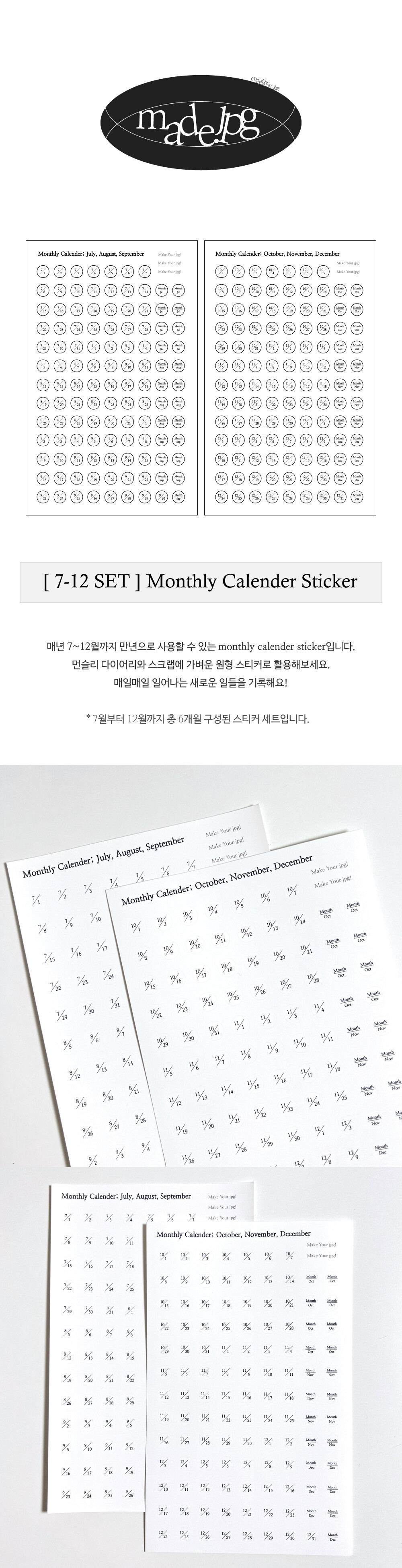 [made.jpg.제이피지잡화점] 7-12월 SET_monthly calender sticker