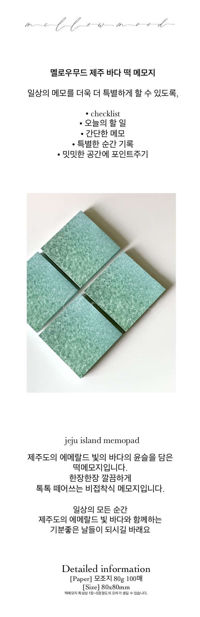 제주도 에메랄드 빛 바다의 윤슬을 담은 떡메모지.