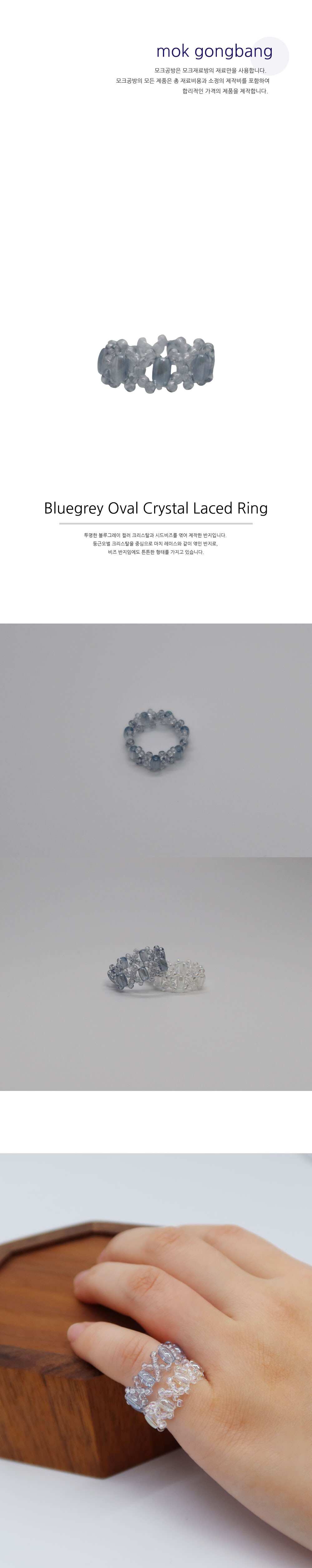 [모크공방] Bluegrey Oval Crystal Laced Ring (2 size)