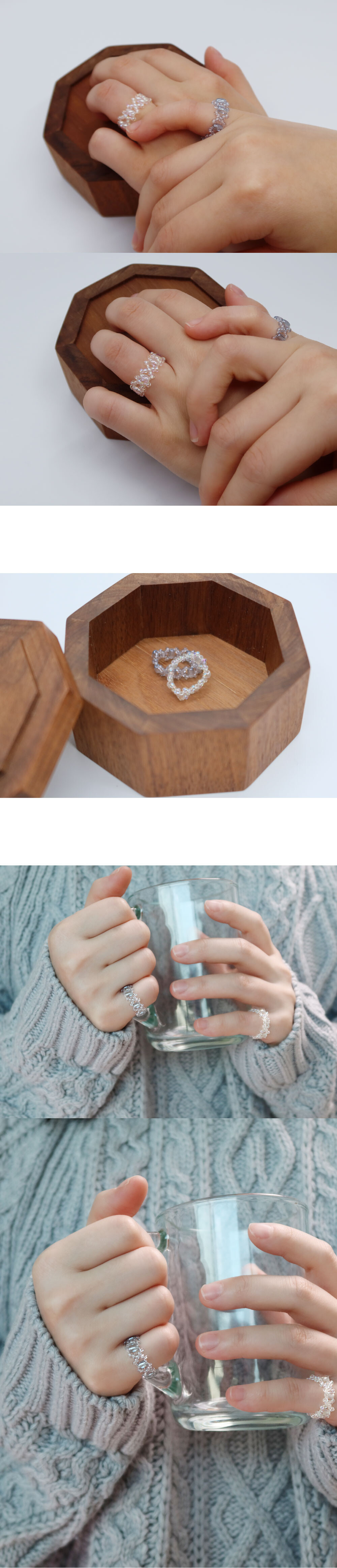 시드비즈를 엮어 제작한 반지.