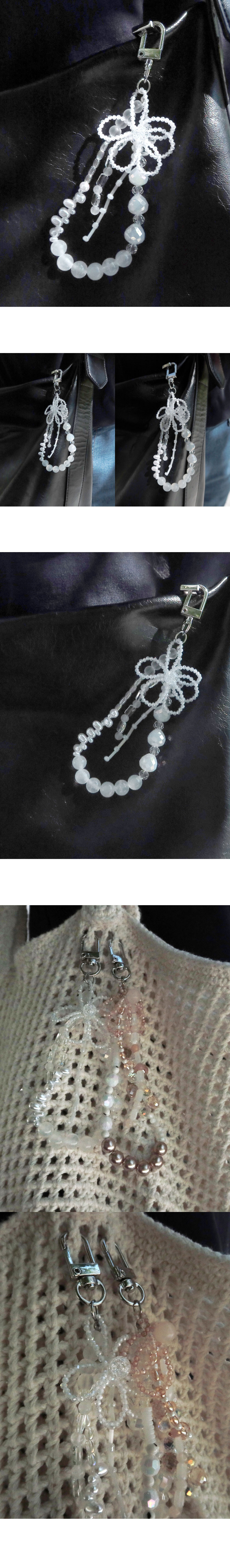 화이트 지르코니아 원석을 사용해 디자인한 플라워 키링.