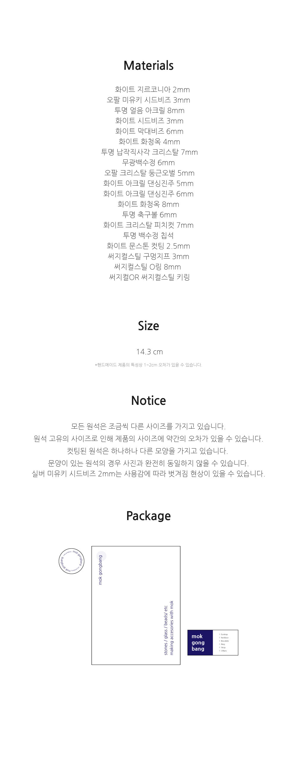 - 지르코니아, 미유키 시드비즈, 아크릴, 국산 시드비즈, 화청옥, 크리스탈, 아크릴 댄싱진주, 백수정, 문스톤, 써지컬스틸