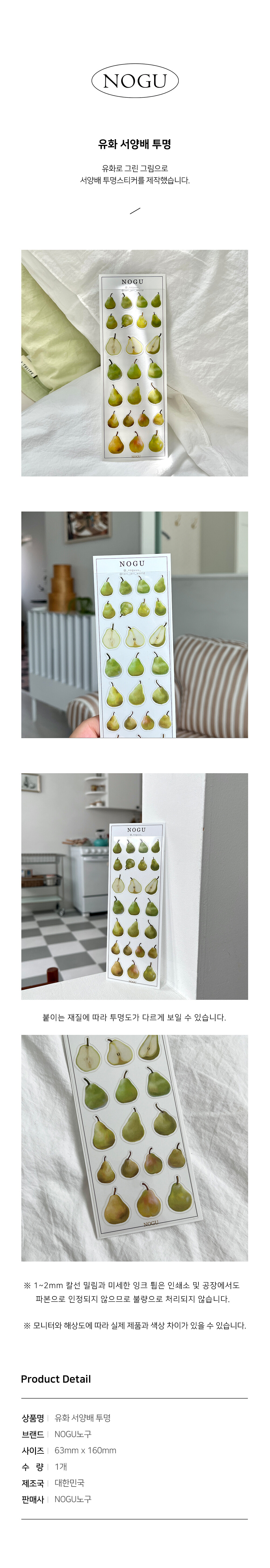 [NOGU노구] 유화 서양배 투명 스티커_재입고