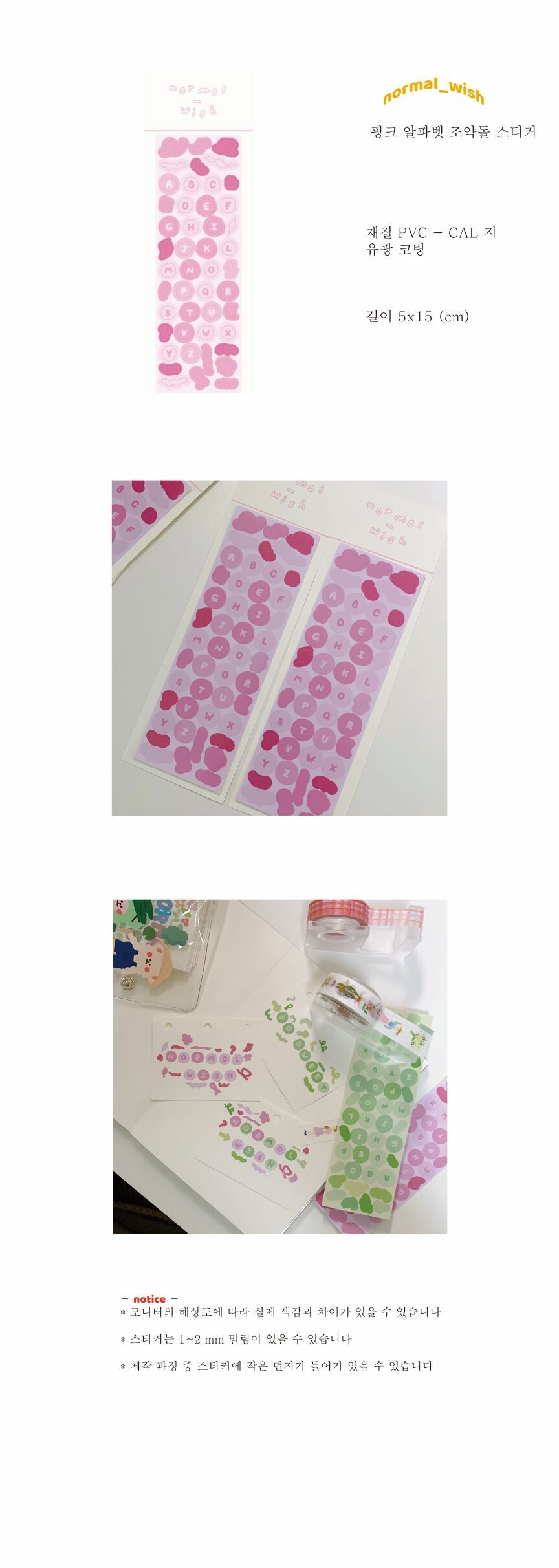 [노멀위시상점] 핑크 알파벳 조약돌 스티커