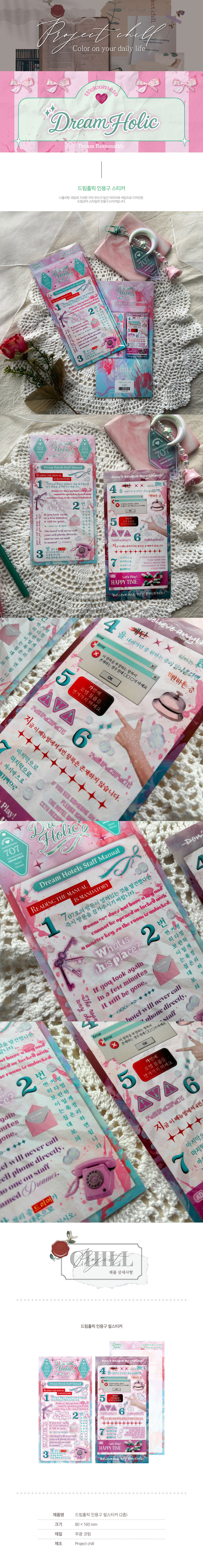 드림홀릭 호텔에 어서 오세요💗 호텔의 이용수칙은 꼭 정독해야 합니다 :) 수칙을 지키지 않을 시 일어나는 모든일은 호텔에서 책임지지 않습니다. 그럼 당신의 꿈같은 호텔을 즐겨주세요🌙 ———⊱⁜⊰——— 드림홀릭 호텔의 비밀스러운 규칙과 이상한 메뉴얼을 담은 인용구 콘셉트 씰스티커 💬 장면을 구성하거나, 다꾸에 드림홀릭의 기묘한 분위기를 얹고 싶을 때 제격 🎀 정체불명의 707호에 배정된 직원이 된 듯한 기분, 이 씰스티커로 당신만의 미스터리한 호텔 메뉴얼을 완성해보세요 🔔