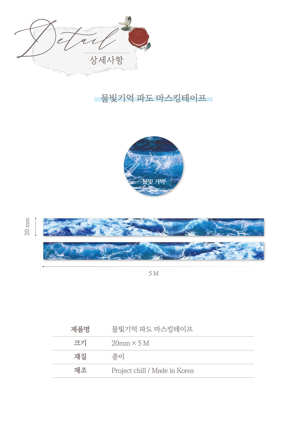 [프로젝트칠] 물빛기억 파도 마스킹테이프_재입고
