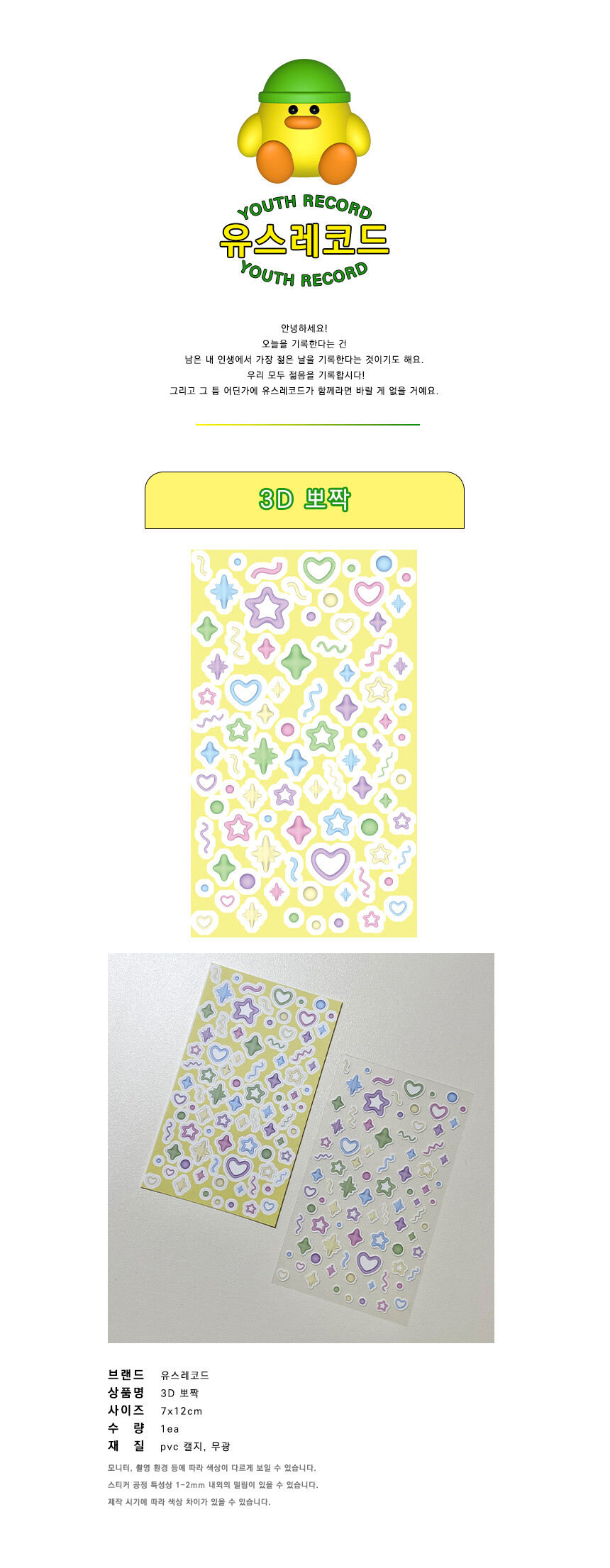 [유스레코드] 3D 유테 뽀짝 스티커_재입고