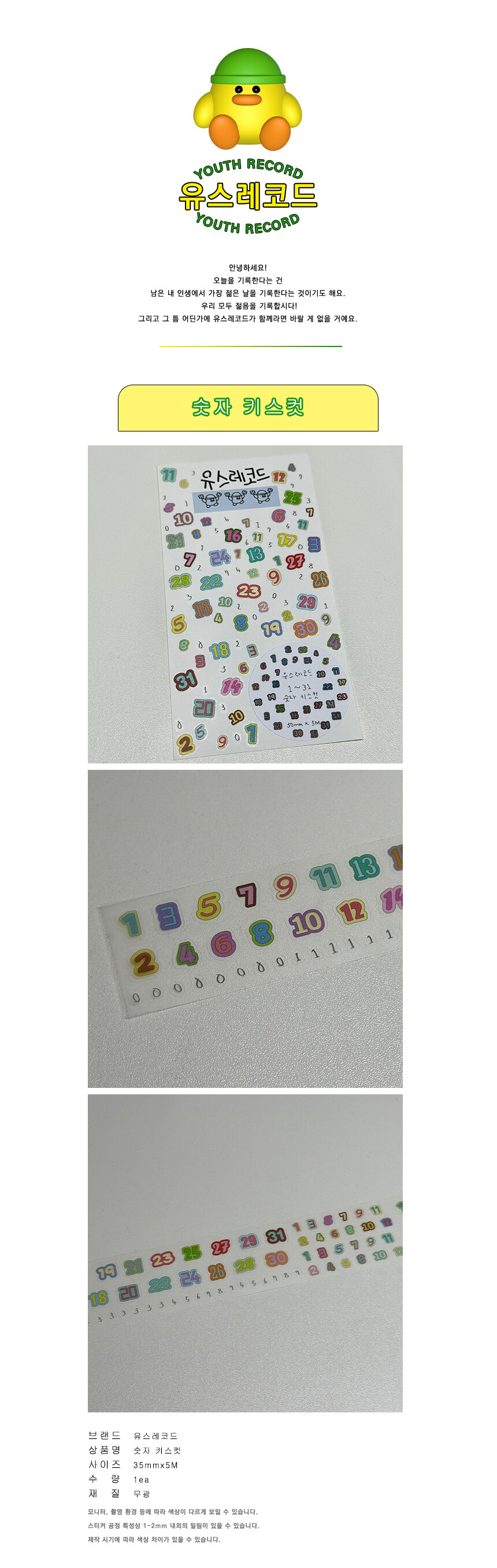 [유스레코드] 숫자_ 키스컷 마스킹테이프_재입고