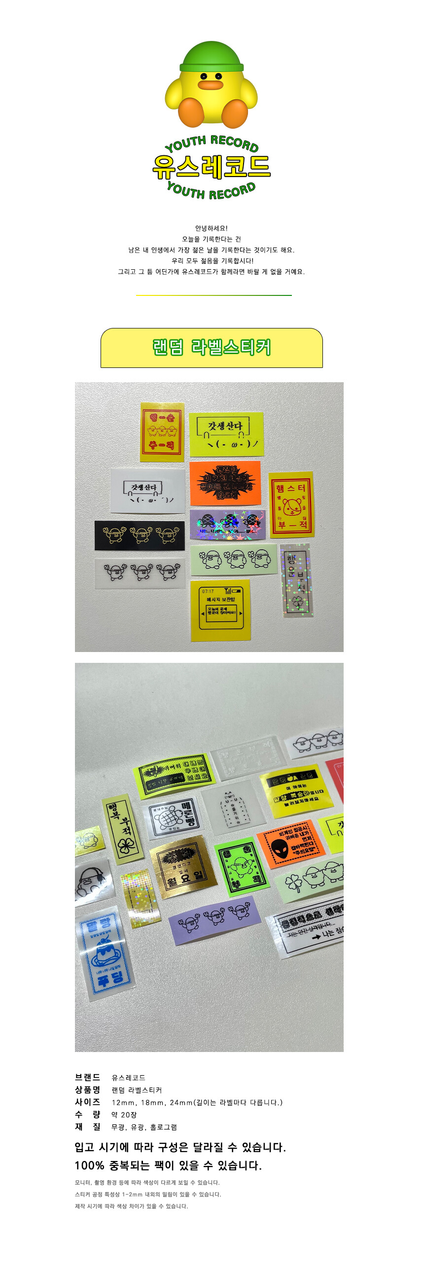 [유스레코드] 랜덤 라벨 스티커_2차 재입고