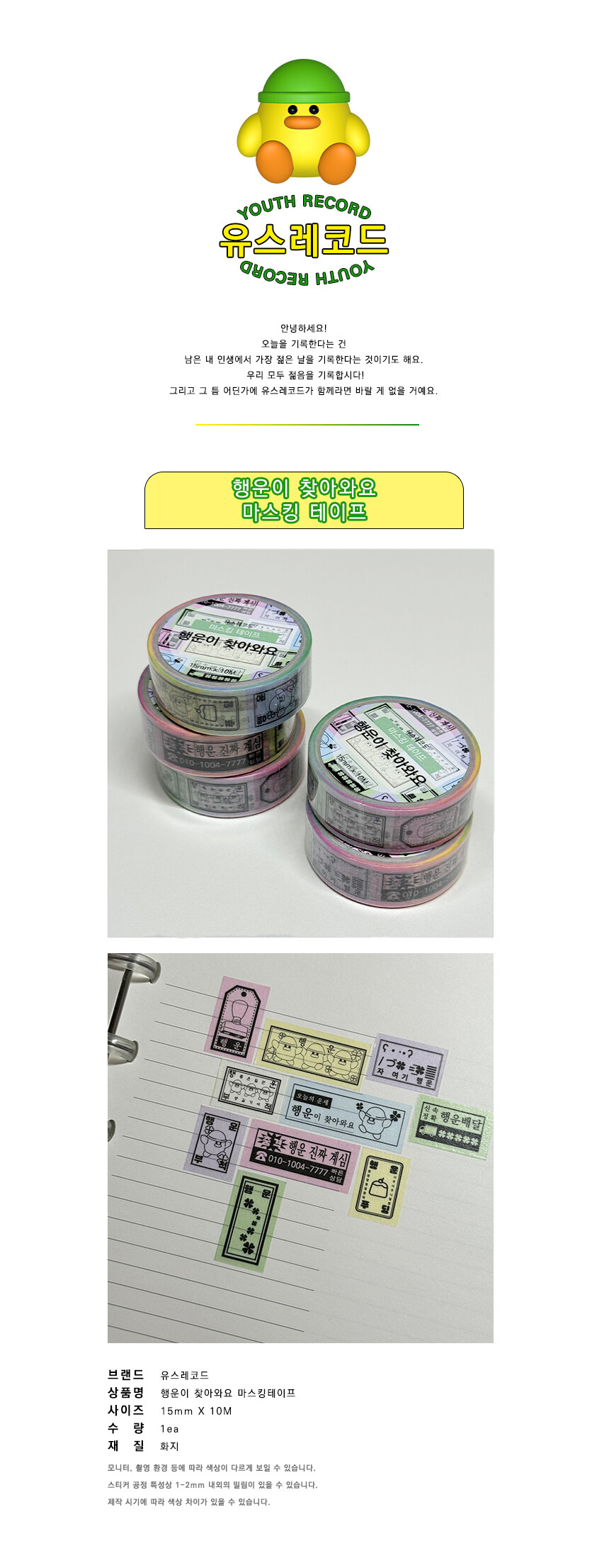 [유스레코드] 행운이 찾아와요 마스킹테이프_재입고