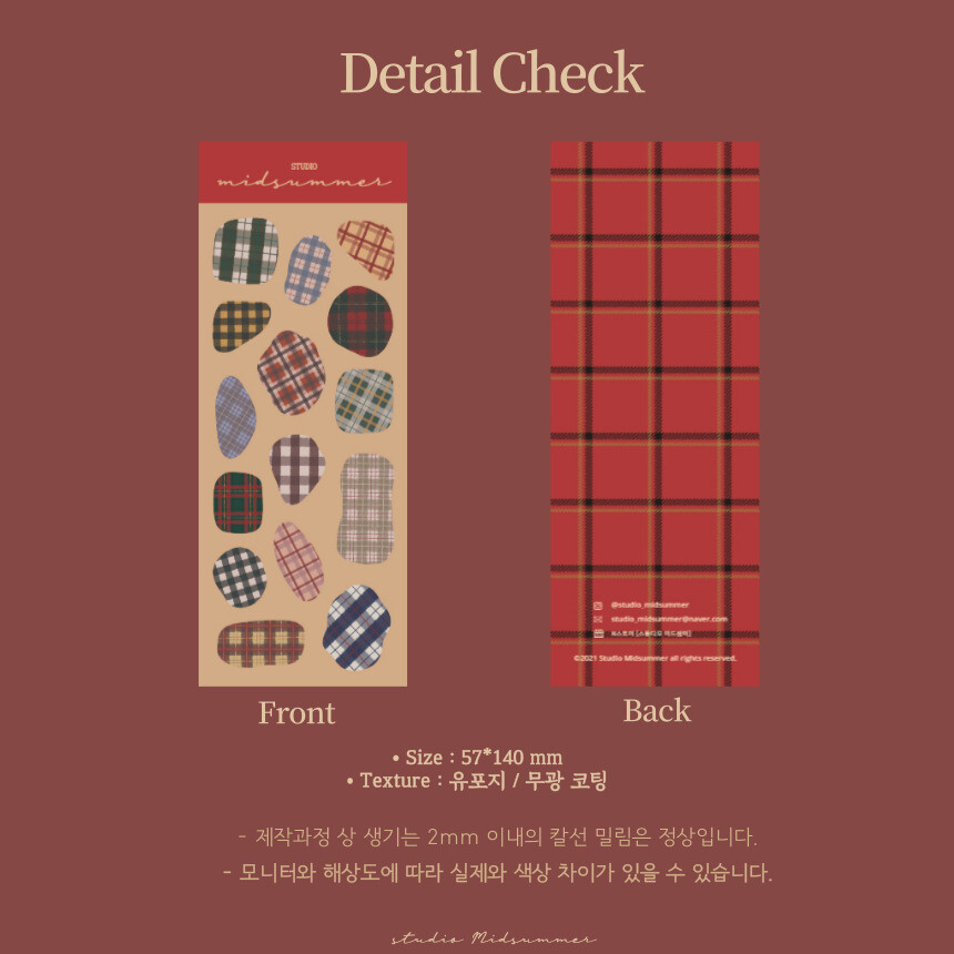[스튜디오 미드썸머] 코지체크 스티커_재입고