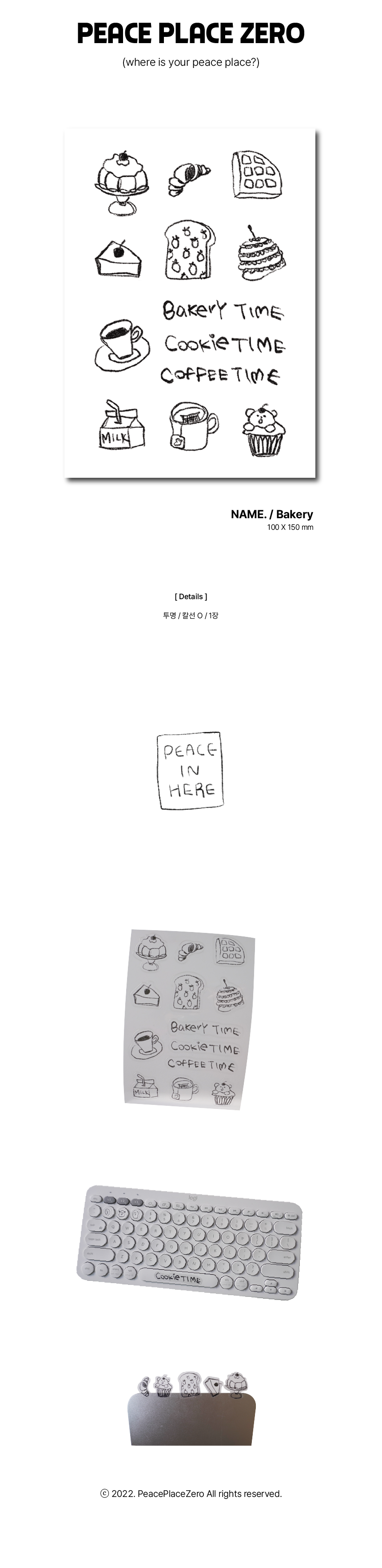 [피스플레이스제로] 리무버블 투명 스티커_Bakery