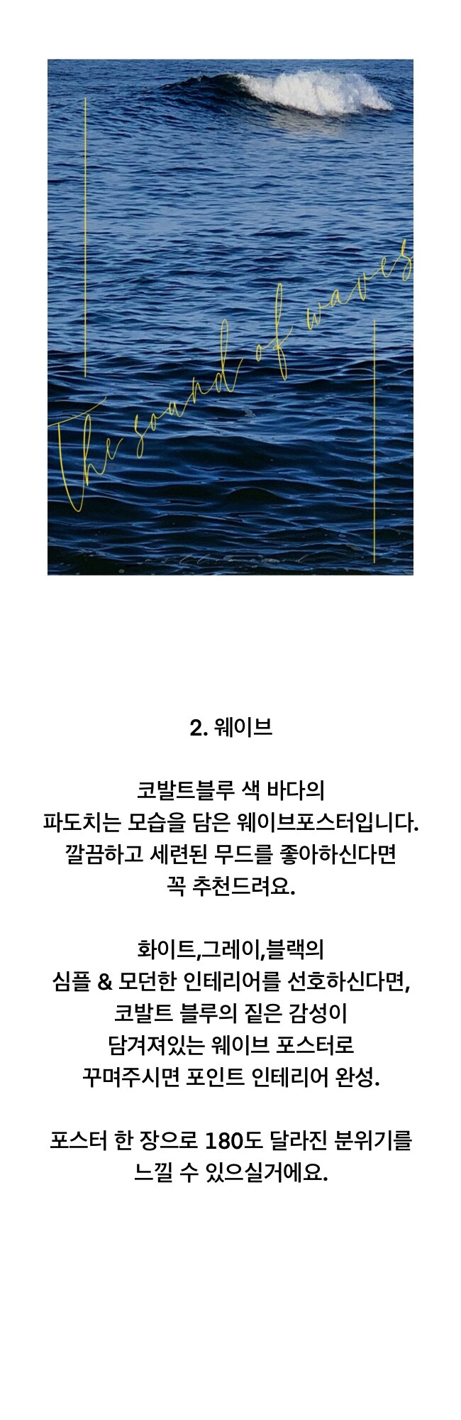 코발트 블루 색 바다의 파도치는 모습을 담은 웨이브포스터입니다.