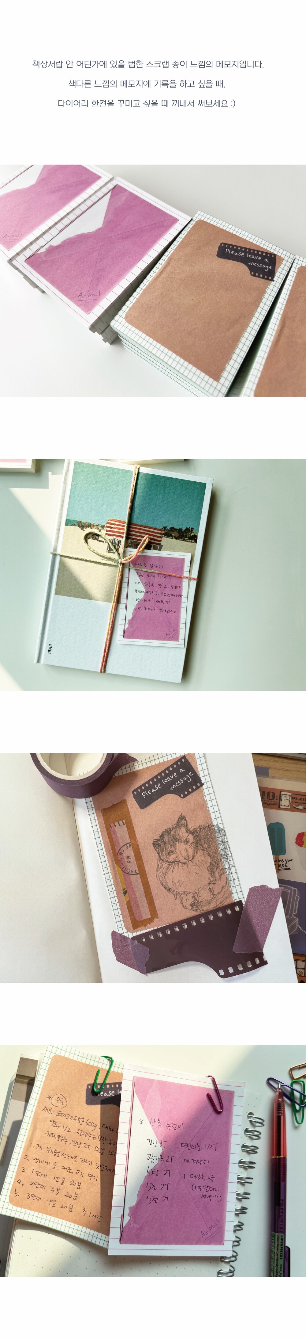 책상서랍 안 어딘가에 있을 법한 스크랩 종이 느낌의 메모지입니다.
